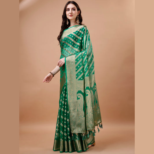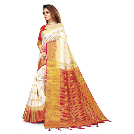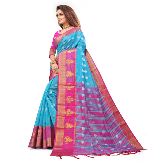 Meenakshi Woven Design Dhakai Jamdani Cotton Blend Saree